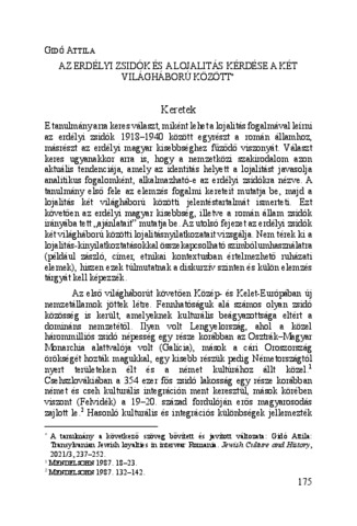 Gidó Attila: Az erdélyi zsidók és a lojalitás kérdése a két világháború között. In: A szétszóratás útjain : zsidó lojalitáshierarchiák változása 60. pp. 175-198. (2024)