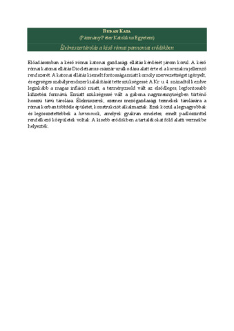 Rudan Kata: Élelmiszertárolás a késő római pannoniai erődökben : [absztrakt].