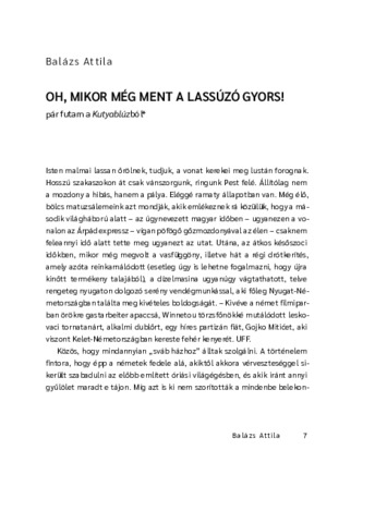 Balázs Attila: Oh, mikor még ment a lassúzó gyors! : pár futam a Kutyablúzból. In: Ilia90 : szövegmunkák egy tápai diplomatának. pp. 7-15. (2024)