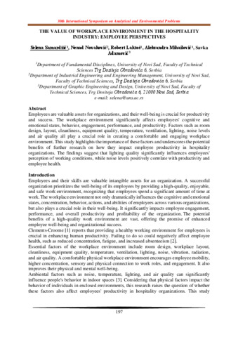 Samardžić Selena; Novaković Nenad; Laktoš Robert; Mihailović Aleksandra; Adamović Savka: The value of workplace environment in the hospitality industry: employee perspectives.