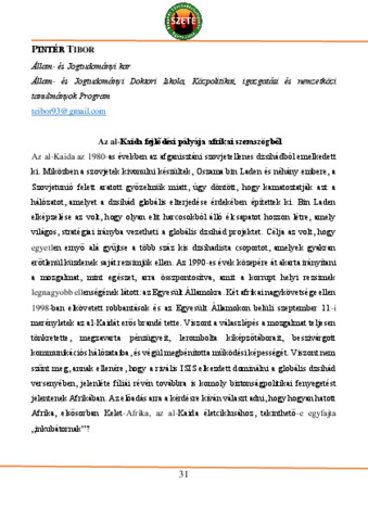 Pintér Tibor: Az al-Kaida fejlődési pályája afrikai szemszögből : [absztrakt].