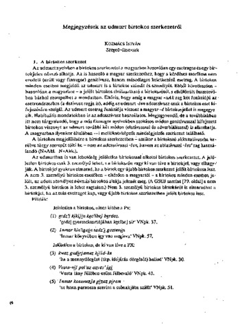 Kozmács István: Megjegyzések az udmurt birtokos szerkezetről. In: Ünnepi könyv Mikola Tibor tiszteletére. pp. 206-208. (1996)