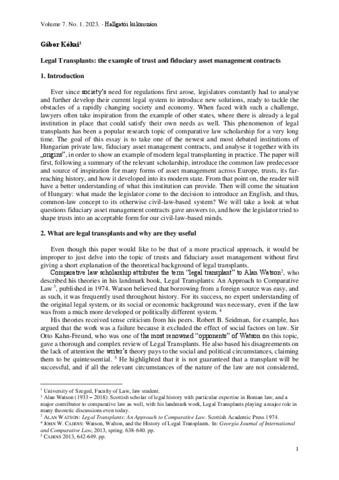 Kókai Gábor: Legal transplants: the example of trust and fiduciary asset management contracts. In: Comparative Law Working Papers, (7) 1. (2023)