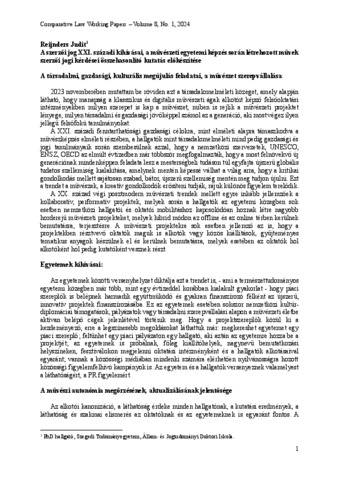 Reijnders Judit: A szerzői jog XXI. századi kihívásai, a művészeti egyetemi képzés során létrehozott művek szerzői jogi kérdései összehasonlító kutatás előkészítése. In: Comparative Law Working Papers, (8) 1. (2024)