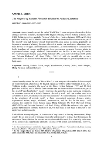Szőnyi György Endre: The progress of esoteric fiction in relation to fantasy literature. In: Papers in English and American studies : Tomus XXVIII. - New Horizons in English and American Studies: Papers from the Doctoral Program, (28). pp. 9-22. (2024)