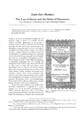 Luis-Martínez Zenón: The law of genre and the order of discourse: two instances of regicide in Tudor historical drama. In: Papers in English and American studies : Tomus XXI. - The iconology of law and order : legal and cosmic, (21). pp. 67-80. (2012)