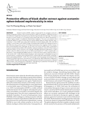 Tran Thi Phuong Nhung; Le Pham Tan Quoc: Protective effects of black shallot extract against acetaminophen-induced nephrotoxicity in mice. In: Acta biologica Szegediensis, (67) 2. pp. 177-185. (2023)