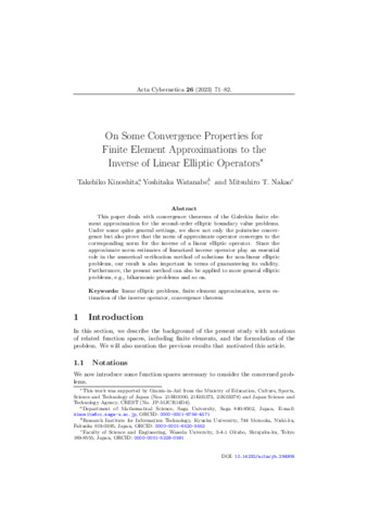 Kinoshita Takehiko; Watanabe Yoshitaka; Nakao Mitsuhiro T.: On some convergence properties for finite element approximations to the inverse of linear elliptic operators. In: Acta cybernetica, (26) 1. pp. 71-82. (2023)
