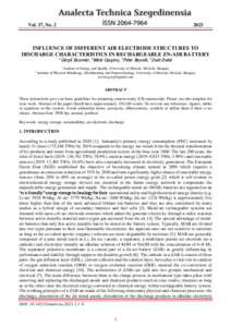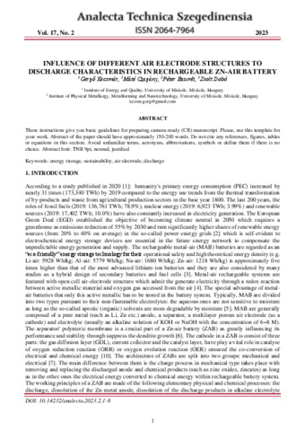 Kecsmár Gergő; Czagány Máté; Baumli Péter; Dobó Zsolt: Influence of different air electrode structures to discharge characteristics in rechargeable Zn-air battery. In: Analecta technica Szegedinensia, (17) 2. pp. 1-8. (2023)