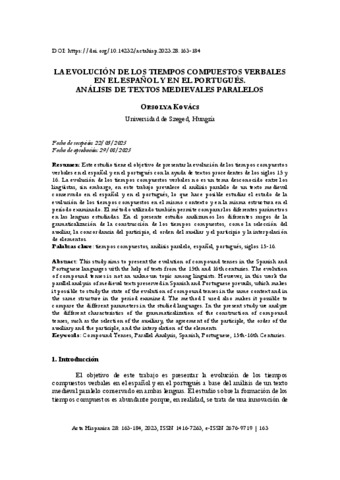 Kovács Orsolya: La evolución de los tiempos compuestos verbales en el español y en el portugués : análisis de textos medievales paralelos. In: Acta hispanica, (28). pp. 163-184. (2023)