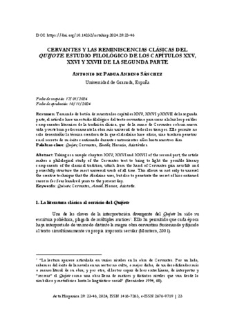 Andino Sánchez Antonio de Pauda: Cervantes y las reminiscencias clásicas del Quijote : estudio filológico de los capítulos XXV, XXVI y XXVII de la segunda parte. In: Acta hispanica, (29). pp. 23-46. (2024)
