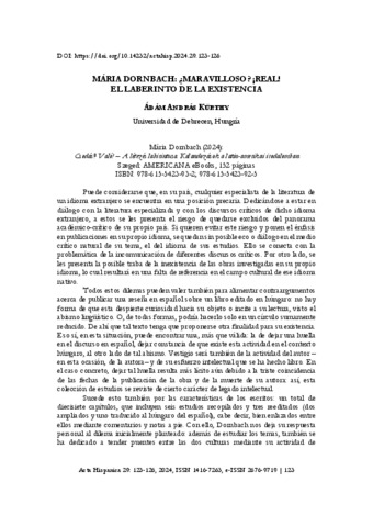 Kürthy Ádám András: Mária Dornbach: ¿Maravilloso? ¡Real! - El laberinto de la existencia. In: Acta hispanica, (29). pp. 123-126. (2024)