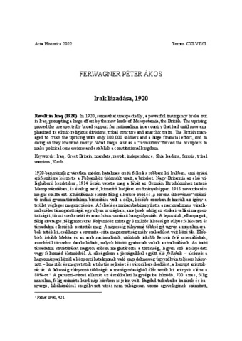 Ferwagner Péter Ákos: Irak lázadása, 1920. In: Acta Universitatis Szegediensis : acta historica, (147) 2. pp. 11-20. (2022)