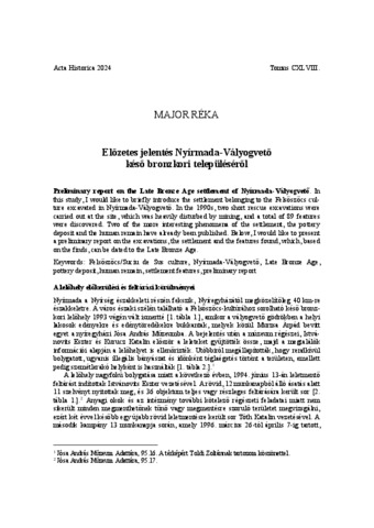 | Egyéb cím: | Preliminary report on the late bronze age settlement of Nyírmada-Vályogvető |