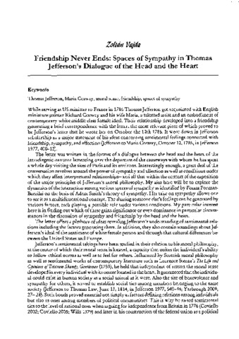Vajda Zoltán: Friendship never ends: spaces of sympathy in Thomas Jefferson's dialogue of the Head and the Heart. In: Sentiment, history and intermediality. pp. 27-33. (2021)