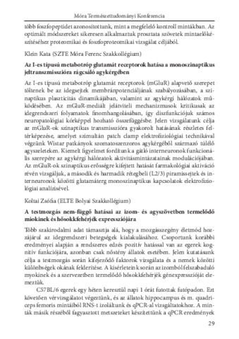 Koltai Zsófia: A testmozgás nem-függő hatásai az izom- és agyszövetben termelődő miokinek és hősokkfehérjék expressziójára : [absztrakt].