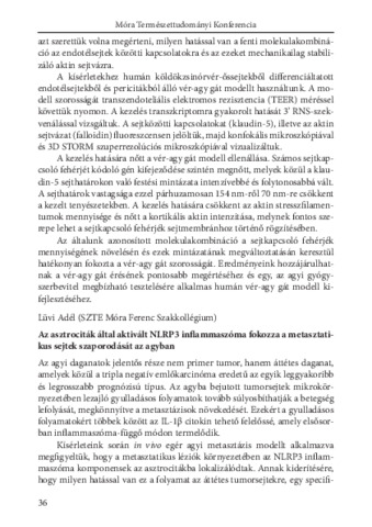 Lüvi Adél: Az asztrociták által aktivált NLRP3 infammaszóma fokozza a metasztatikus sejtek szaporodását az agyban : [absztrakt].