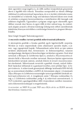 Sávai Gergő: A mucorales rendhez tartozó gombák mikovírusainak jellemzése : [absztrakt].