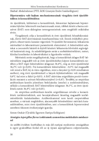 Simon Oszkár: Atoxigén Aspergillus favus izolátumok azonosítása molekuláris módszerrel : [absztrakt].