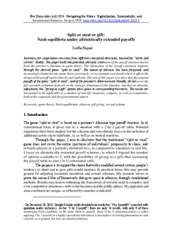 Hajnal Zsófia: Split or steal or gift: Nash equilibria under altruistically extended payoffs.