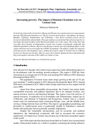 Central Asia, historically closely tied to Russia and Ukraine, has experienced severe repercussions from the 2022 Russian–Ukrainian war. The five Central Asian nations – Kazakhstan, the Kyrgyz Republic, Tajikistan, Turkmenistan, and Uzbekistan – have faced worsened poverty and an increased vulnerability of households. The paper employs a postcolonial theoretical perspective to investigate the nuanced effects of the Russian–Ukrainian war on the region. The results show that even after three decades of independence Central Asia remains economically, politically and militarily dependent on Russia. Shocks in the Russian economy have had significant effects on the region which has not recovered after the COVID-19 pandemic. The military conflict has triggered persistent poverty and inequality issues, stalling the progress made by Central Asia in reducing poverty over the past two decades. After two years, the economic damage has been substantial and long-term negative outcomes of the conflict are about to come.