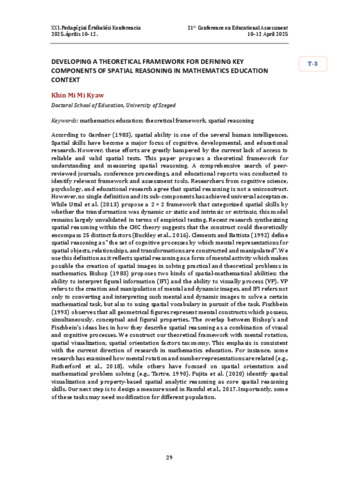 Kyaw Khin Mi Mi: Developing a theoretical framework for defining key components of spatial reasoning in mathematics education context : [abstract].