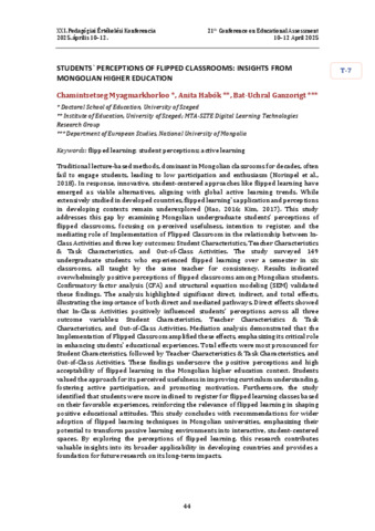Myagmarkhorloo Chamintsetseg; Habók Anita; Ganzorigt Bat-Uchral: Students' perceptions of flipped classrooms: insights from Mongolian higher education : [abstract].