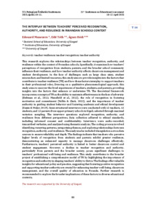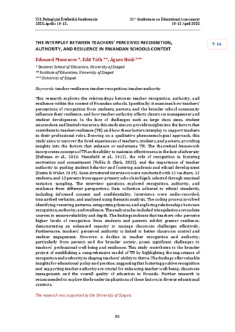 Munezero Edouard; Tóth Edit; Hódi Ágnes: The interplay between teachers' perceived recognition, authority, and resilience in Rwandan schools context : [abstract].