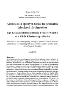 Zalai Anita: Adalékok a spanyol-török kapcsolatok jelenkori történetéhez : egy katalán politikus reflexiói: Francesc Cambó és a Török Köztársaság születése = Additions to the contemporary history of Spanish-Turkish relations : reflections of a Catalan politician: Francesc Cambo and the birth of the Turkish Republic. In: Belvedere Meridionale, (36) 4. pp. 5-10. (2024)