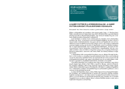 Kolek Alina Dóra: A Harry Potter és a gyerekirodalom - A Harry Potter-sorozat stílusjegyeinek vizsgálata : [absztrakt].