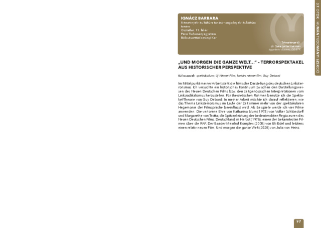 Befoglaló folyóirat/kiadvány címe: Országos Tudományos Diákköri Konferencia : Humán Tudományi Szekció