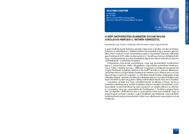 Solymos Eszter: A gépi műfordítás elemzése Oscar Wilde A boldog herceg c. művén keresztül : [absztrakt].