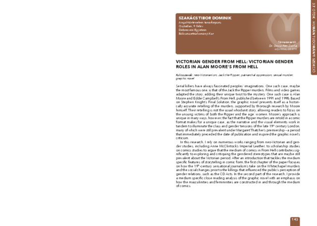 Szakács Tibor Dominik: Victorian gender from hell: Victorian gender roles in Alan Moore's from hell : [abstract].