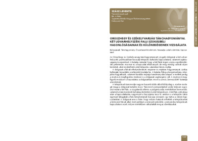 Szász Levente: Oroszhegy és Székelyvarság tánchagyományai : két udvarhelyszéki falu szokásbeli hasonlóságainak és különbségeinek vizsgálata : [absztrakt].