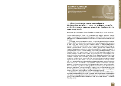 Zalatnay Klára Lujza: "[...] összeszedném ebben a megyében a veszendőbe menőket" - egy 20. századi folklór gyűjtő szakmai kapcsolatairól és érvényesülési stratégiájáról : [absztrakt].