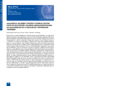 Ahasvéros idejében történt? : kísérlet Eszter könyve keletkezési idejének meghatározására az akhaimenida és a szeleukida történelem tükrében : [absztrakt]