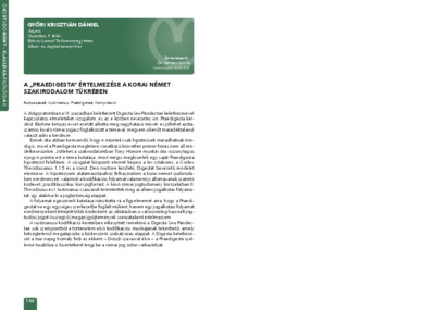 Győri Krisztián Dániel: A "Praedigesta" értelmezése a korai német szakirodalom tükrében : [absztrakt].