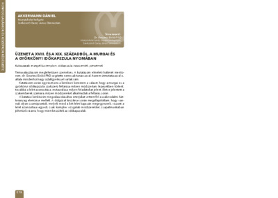 Akkermann Dániel: Üzenet a XVIII. és a XIX. századból : a murgai és a györkönyi időkapszula nyomában : [absztrakt].