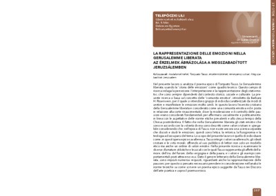 Telepóczki Lili: La rappresentazione delle emozioni nella Gerusalemme liberata = Az érzelmek ábrázolása a Megszabadított Jeruzsálemben : [absztrakt].