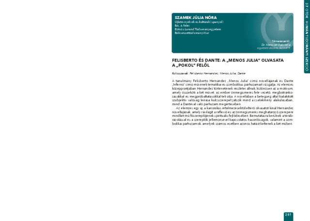 Szamek Júlia Nóra: Felisberto és Dante: a "Menos Julia" olvasata a "Pokol" felől : [absztrakt].
