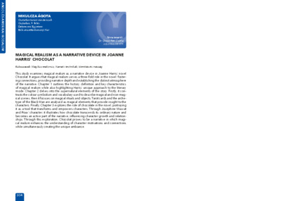 Mikulcza Ágota: Magical realism as a narrative device in Joanne Harris' Chocolat : [abstract].