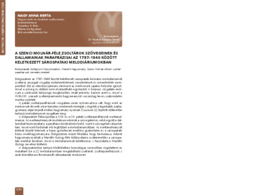 Nagy Anna Berta: A Szenci Molnár-féle zsoltárok szövegeinek és dallamainak parafrázisai az 1787-1840 között keletkezett sárospataki melodiáriumokban : [absztrakt].