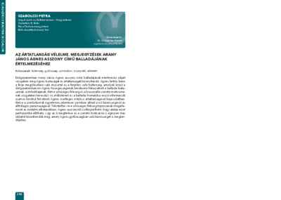 Szabolcsi Petra: Az ártatlanság vélelme : megjegyzések Arany János Ágnes asszony című balladájának értelmezéséhez : [absztrakt].