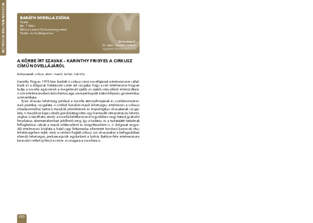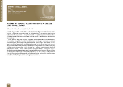 Baráth Mirella Zsóka: A körbe írt szavak - Karinthy Frigyes A cirkusz című novellájáról : [absztrakt].