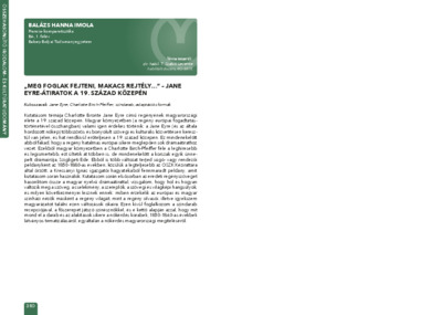 Balázs Hanna Imola: "Meg foglak fejteni, makacs rejtély..." - Jane Eyre-átiratok a 19. század közepén : [absztrakt].