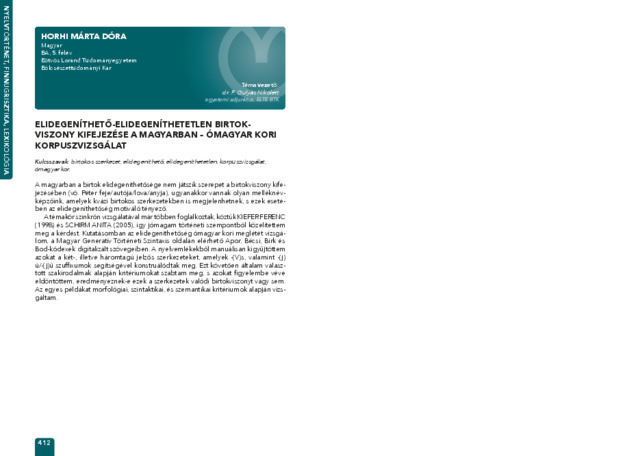 Horhi Márta Dóra: Elidegeníthető-elidegeníthetetlen birtokviszony kifejezése a magyarban - ómagyar kori korpuszvizsgálat : [absztrakt].