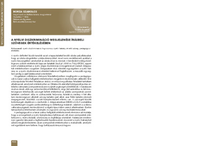 Borza Szabolcs: A nyelvi diszkrimináció megjelenése írásbeli szövegek értékelésében : [absztrakt].