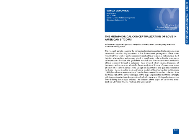 Varga Veronika: The metaphorical conceptualization of love in American sitcoms : [abstract].