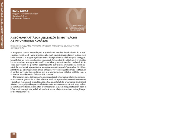 Baku Laura: A szómagyarítások jellemzői és motivációi az informatika korában : [absztrakt].