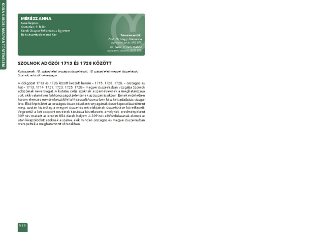 Mérész Anna: Szolnok adózói 1713 és 1728 között : [absztrakt].